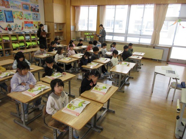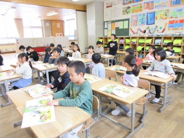 道徳科の学習で、資料から登場人物の気持ちについて考えています。
