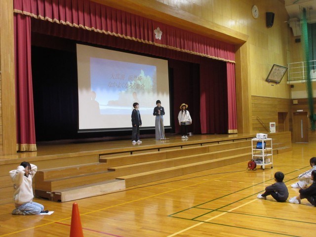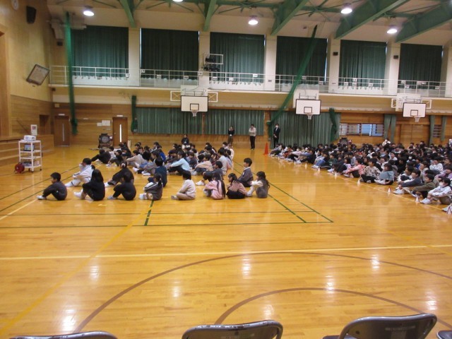 今日は、浜黒崎小学校、大広田小学校の全校児童による集会が行われました。