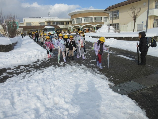 雪が残っていますが、安全に気を付けながら下校していきました。
