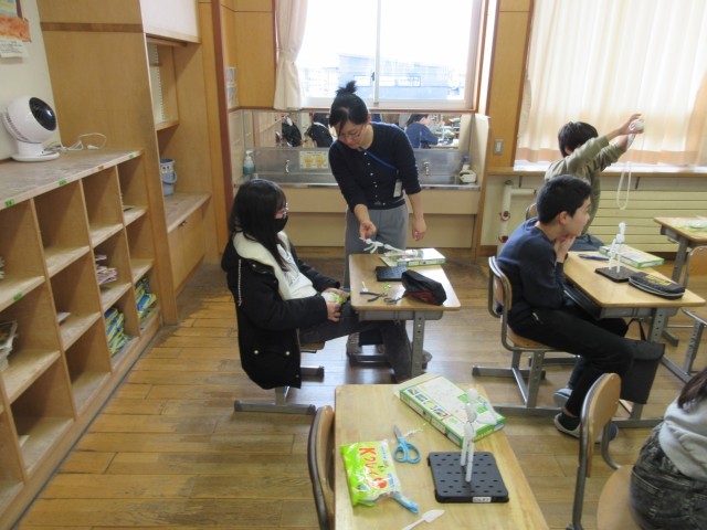 図画工作科の学習で、紙粘土を使い自分の姿を作っています。