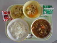 今日の献立は、ごはん、牛乳、にしんのみぞれ煮、ひじきとコーンのソテー、卵とじです。