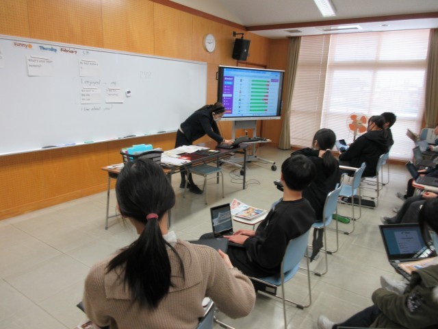 外国語科の学習で、単語クイズに取り組んでいます。