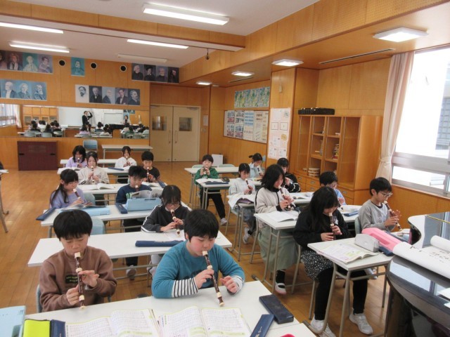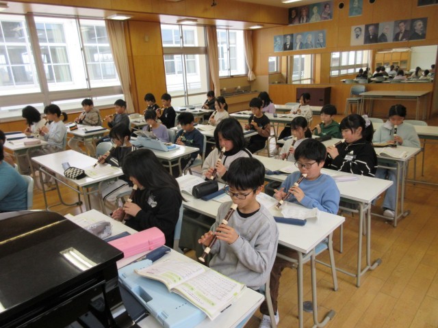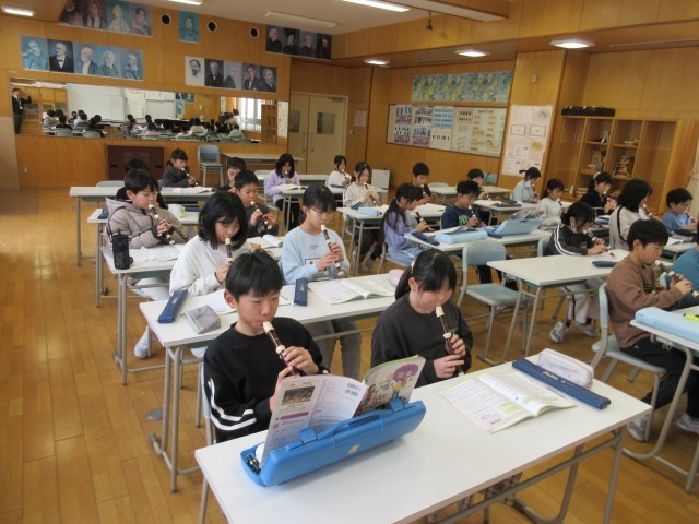 音楽科の学習で、りこーだの練習に取り組んでいます。