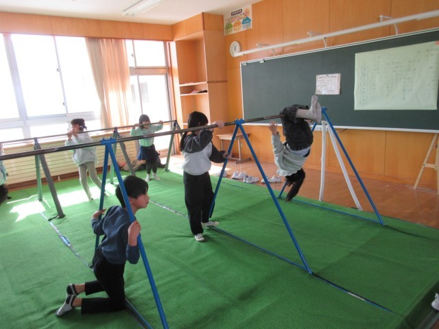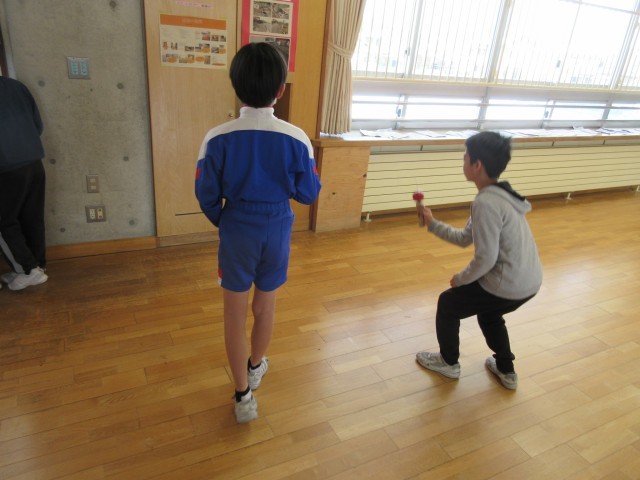 なわとび、鉄棒、けん玉などで楽しんでいます。