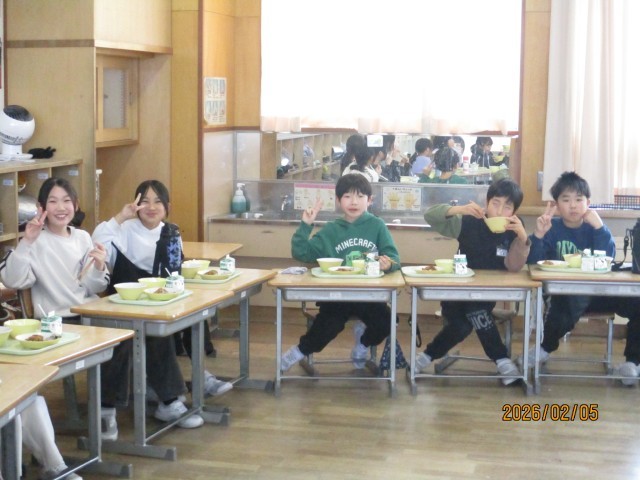 今日は大好きなジョン先生と一緒に給食を食べました。うれしくてみんなテンション高めでした。