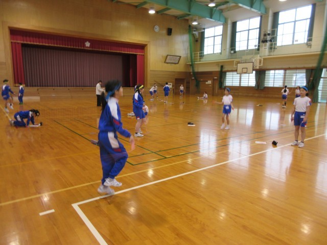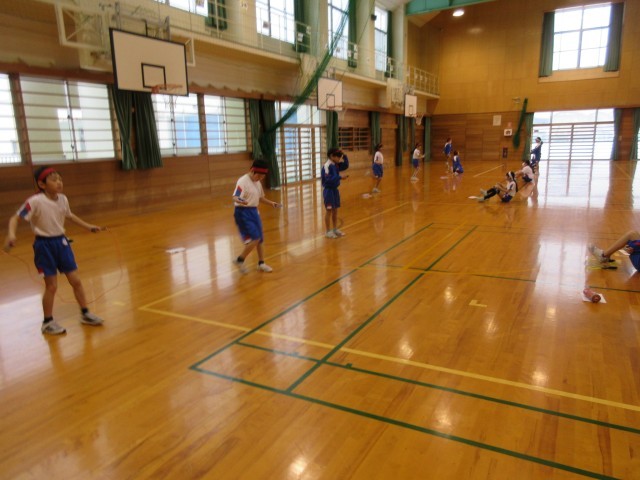 体育科の学習で、短縄跳びに取り組んでいます。