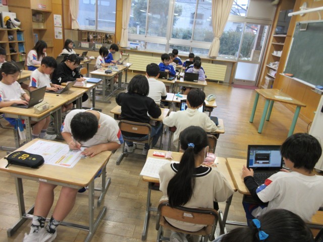 国語科の学習で、課題を終えた子供から自習に取り組んでいます。