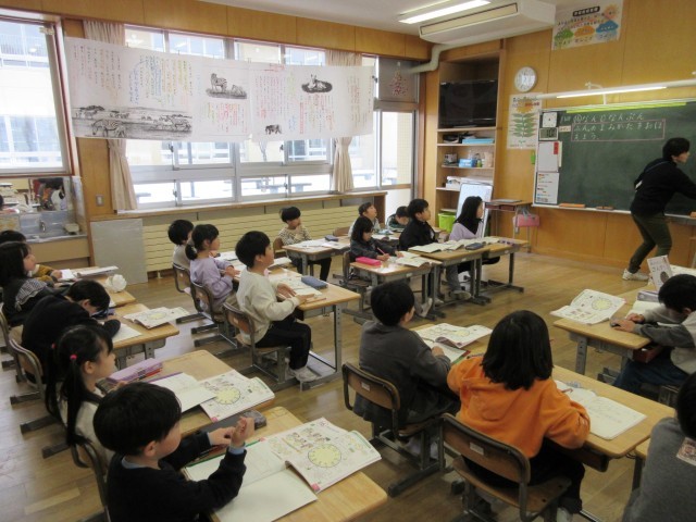 算数科の学習で、時計のよみ方を学んでいます。
