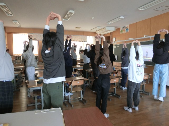 子供ロコモについて学び、予防のための簡単な運動を行いました。