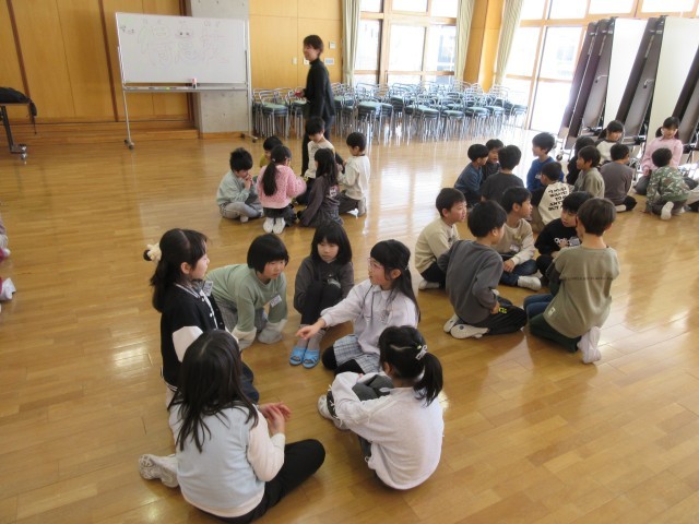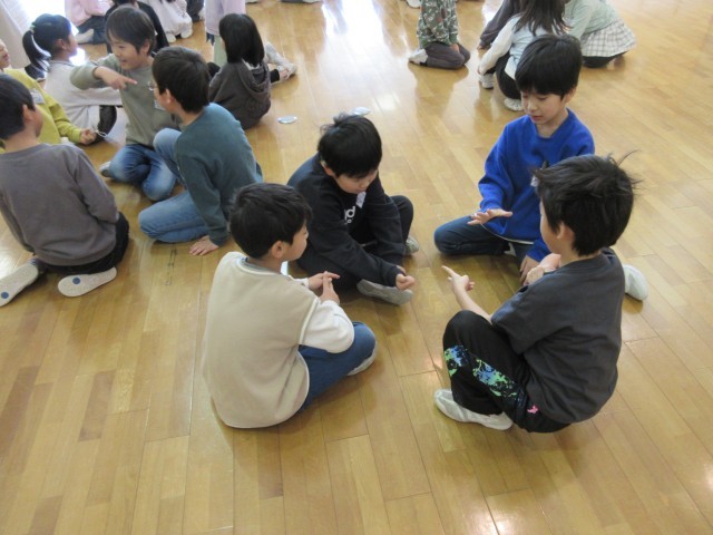 先ずは、グループづくりのゲームをして楽しんでいます。