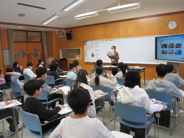 外国語の学習で、行きたい場所の尋ね方やしたいことの尋ね方について学んでいます。