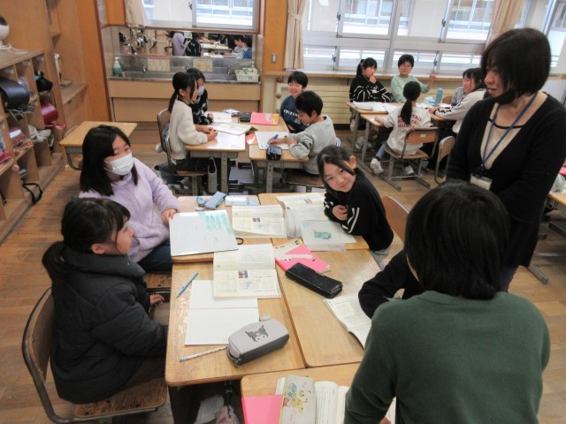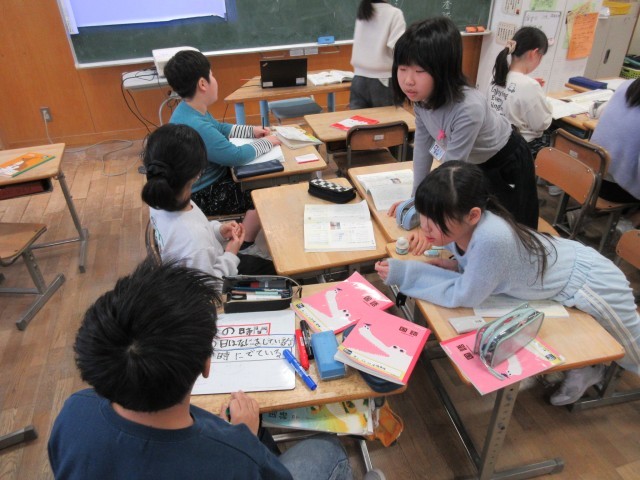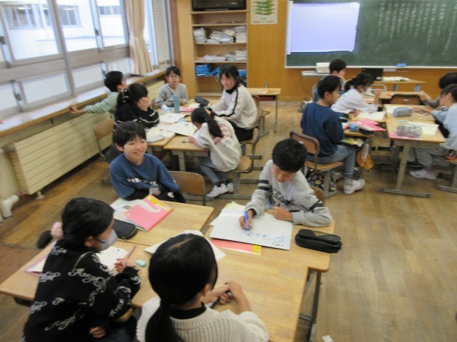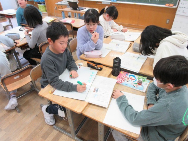 国語科の学習で、話し合いをするためのテーマを決めています。