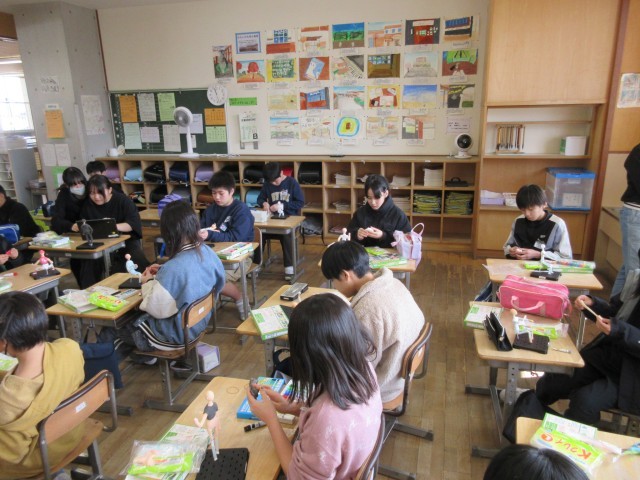 図画工作科の学習で、集中して作品づくりに取り組んでいます。