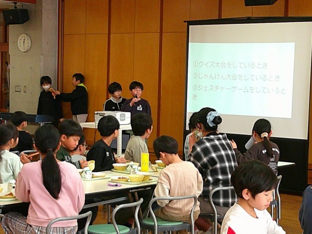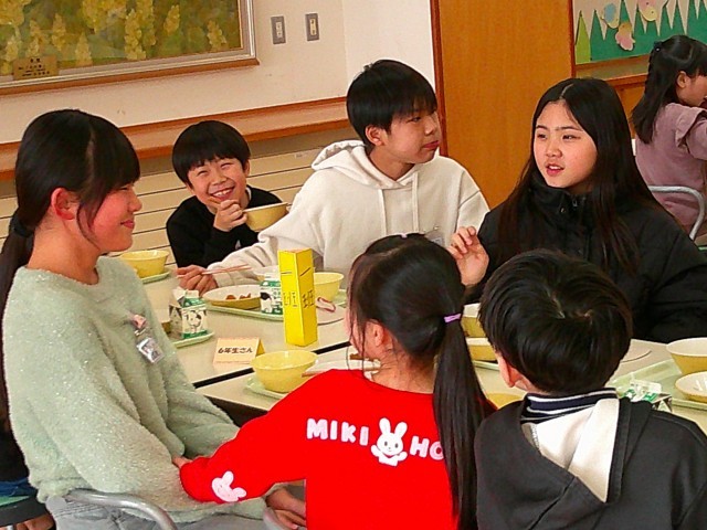 6年生との会食。卒業してしまうさみしさもありますが、みんなが笑顔になる瞬間がすてきでした。まだまだ、たくさん思い出をつくりましょう。