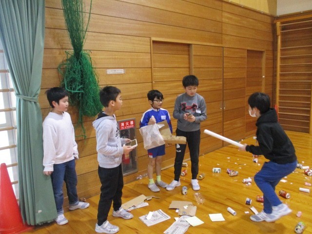 ゴミになるものを上手に生かして色々な遊びや体験コーナーが開かれており、子供たちは楽しく活動することができました。企画・準備をしてくださった4年生さん、ありがとうございました。