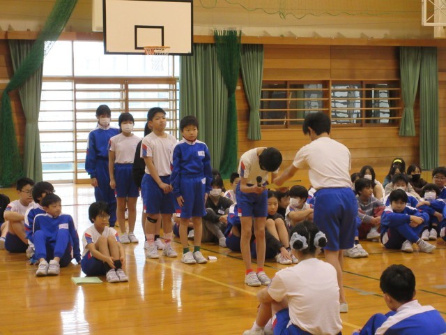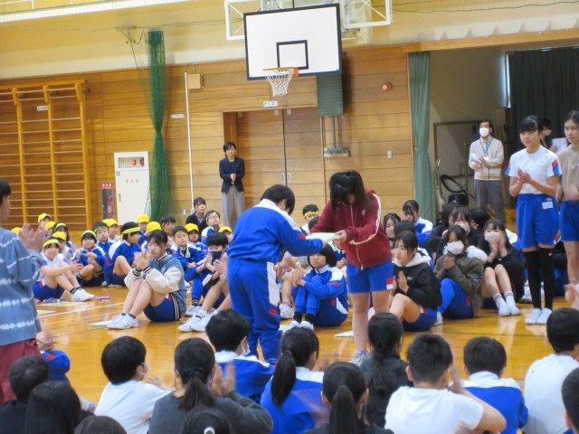 6年生より委員会のファイルと共に「頑張ってください」の気持ちもしっかりと
