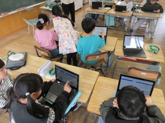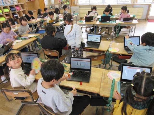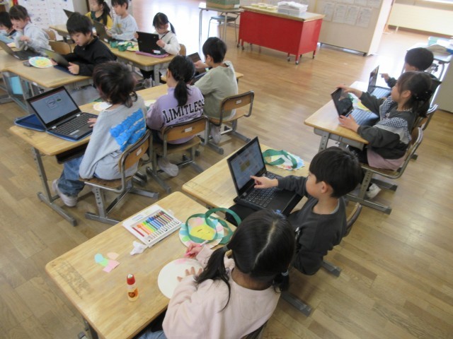 卒業を祝う集会の準備やタブレットを使って学習を進めています。