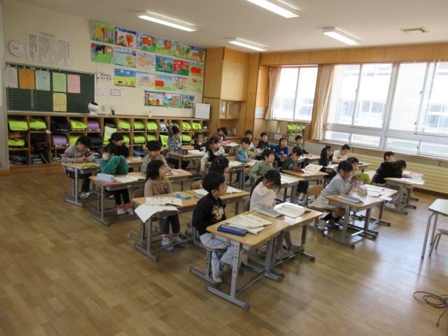国語科の学習で、形のよく似た漢字の違いを見つけています。