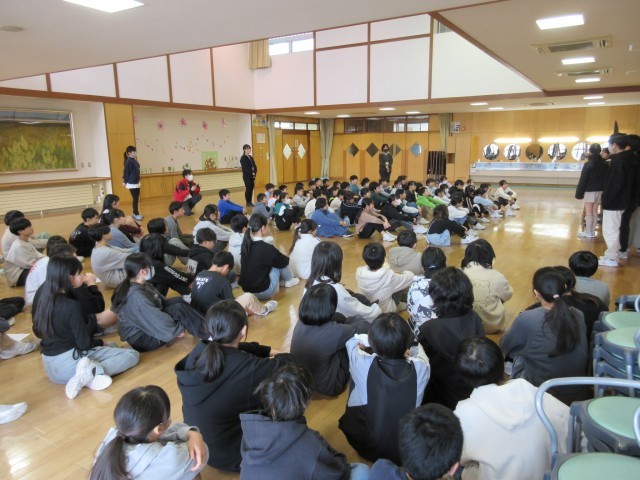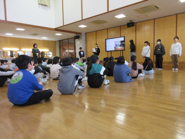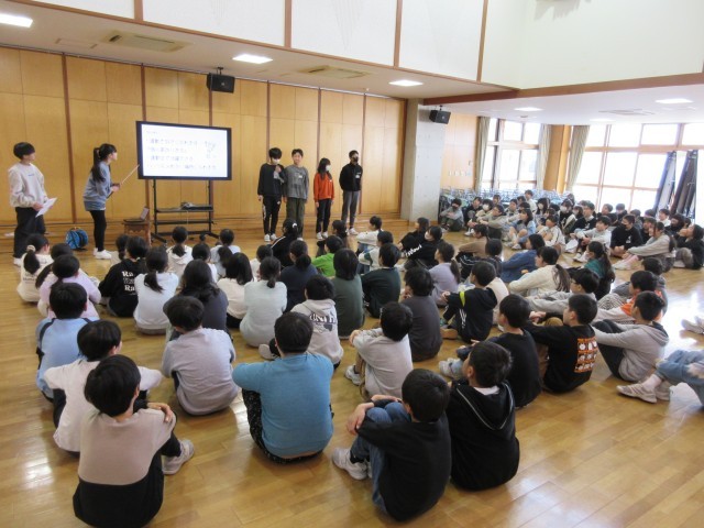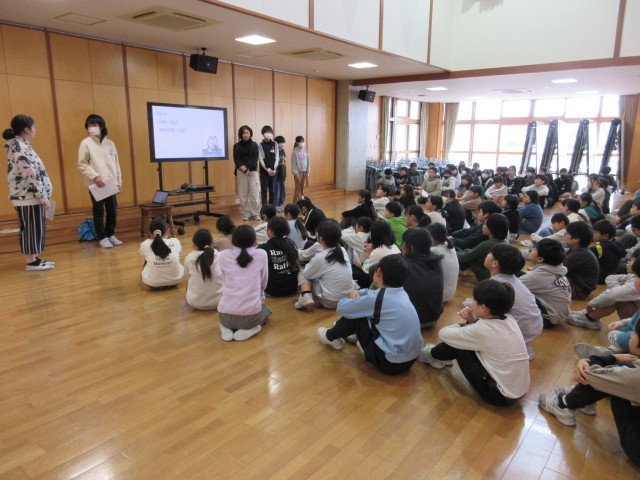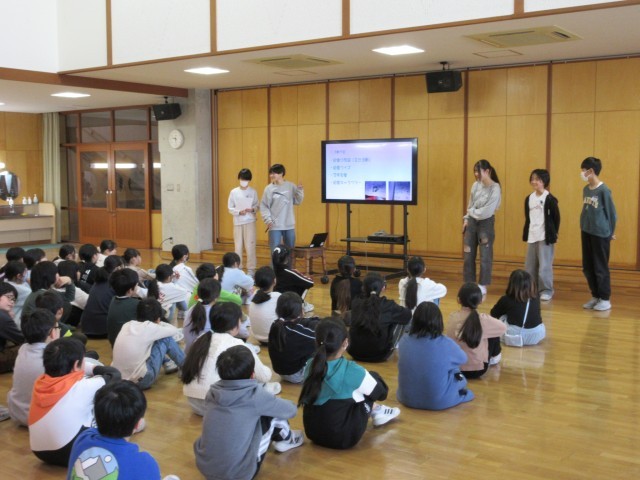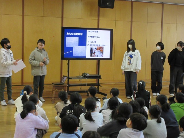 6年生より来年度より委員会が始まる4年生へ委員会の紹介が行われました。