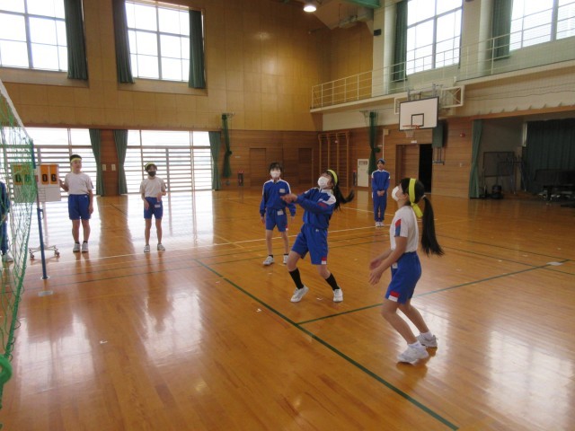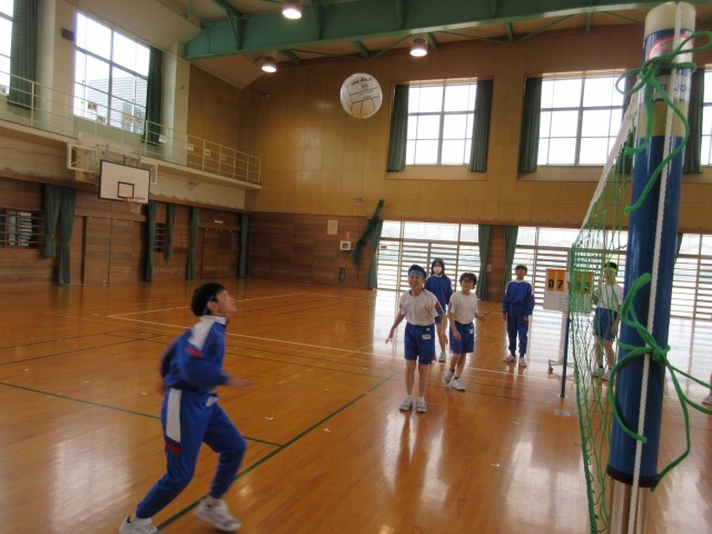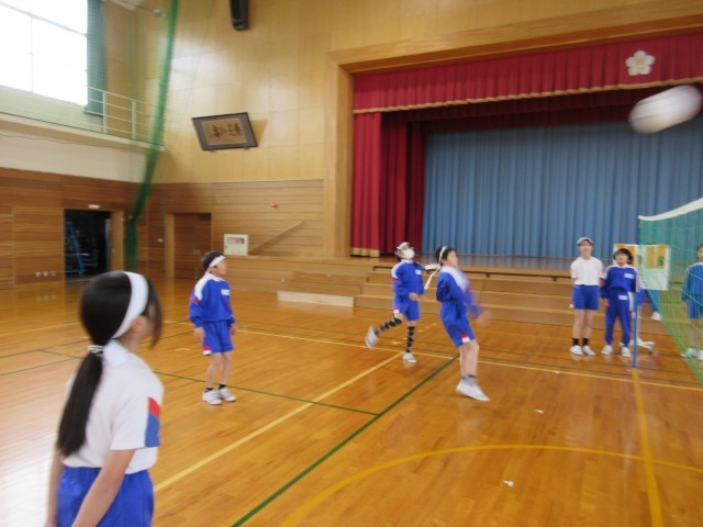 体育科の学習で、ソフトバレーボールに熱中しています。