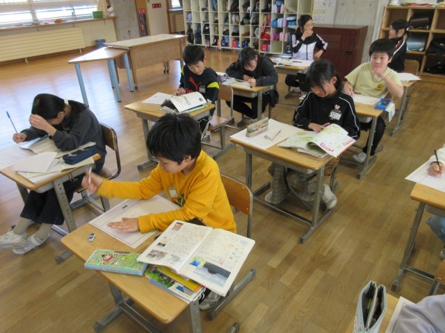 社会科の学習で、新聞づくりや問題作りで学習をまとめています。