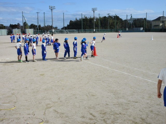 体育科の学習で、かけっこ遊びに取り組んでいます。
