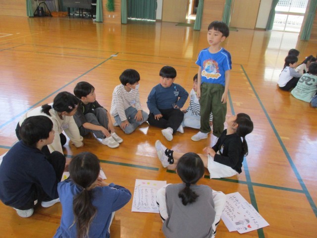 司会の2年生の話をしっかり聞いてから、グループで集まり自己紹介をしました。