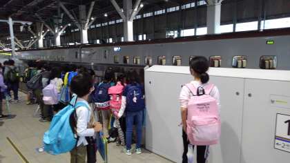 富山駅のホームで、北陸新幹線が発車する様子を観察しました。