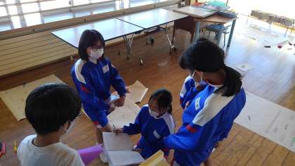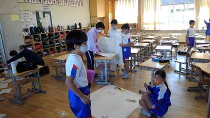 総合的な学習の時間で調べた事や大村海岸に出掛けて気づいた事等をまとめました。発表の仕方も各グループ工夫しています。