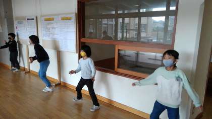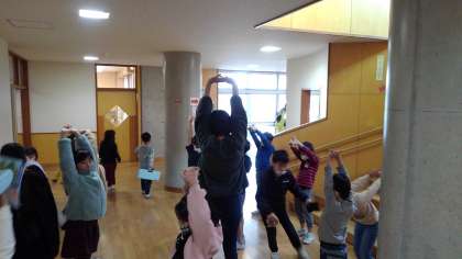 久しぶりの大広田体操です。子供たちは元気に体を動かしています。