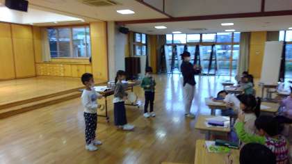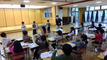 いろいろな打楽器で大きな音や優しい音を鳴らしました。