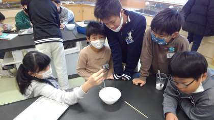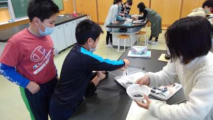 グループで協力して、実験を進めています。結果もしっかり記録しています。