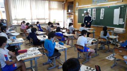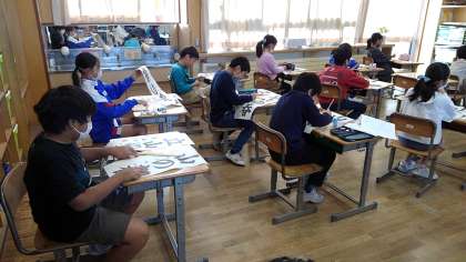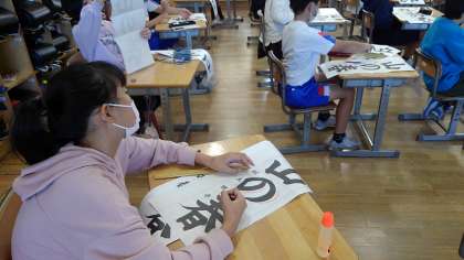 書き初めの練習が始まりました。一字一字注意する点をお手本に書き込みました。