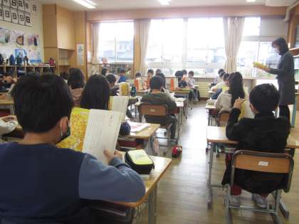 国語科では「三年とうげ」を学習しています。リズミカルに音読し、楽しそうです。
