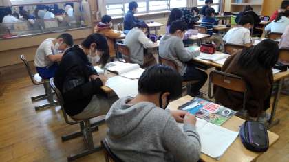 資料集や教科書を調べて、課題に向き合っています。