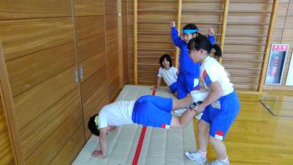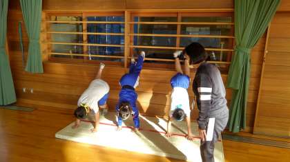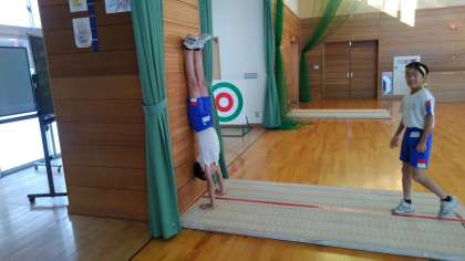マット運動では、倒立に挑戦しています。