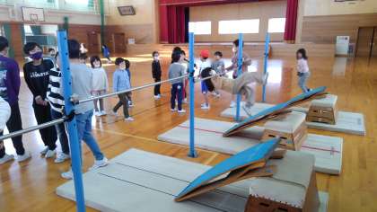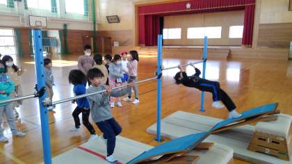 今日から鉄棒週間が始まりました。チャレンジ技7の技や難しい技に挑戦しています。
