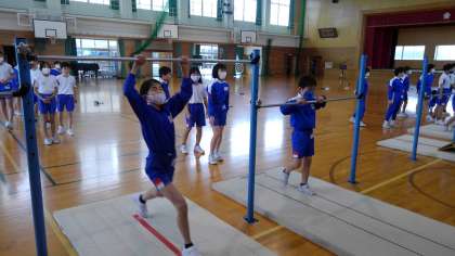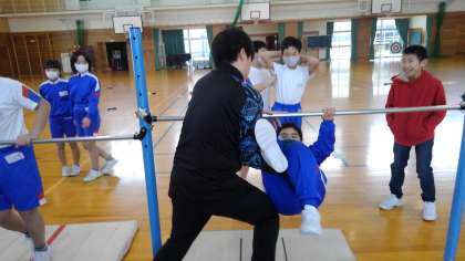 今週は体育館に鉄棒が設置されているので、体育の学習においても鉄棒運動に取り組んでいます。