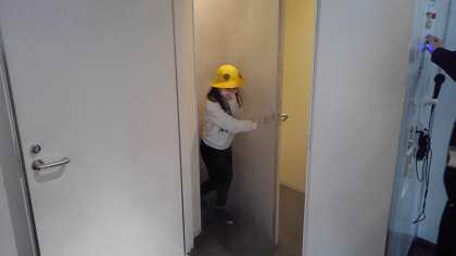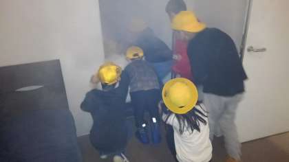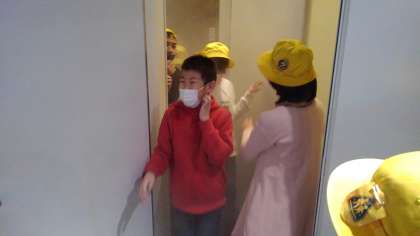 四季防災館でいろいろな災害を体験しました。煙の中は、先が見えず、手探りで進みました。