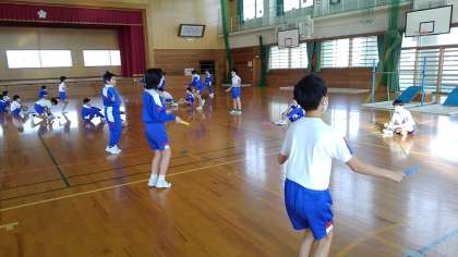 なわとび運動に取り組んでいます。いろいろな技に挑戦いています。
