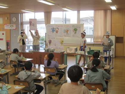 今日は教室に訪問して、予防法7つを紹介しクラス全員で予防しようと呼びかけにいきました。