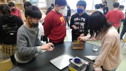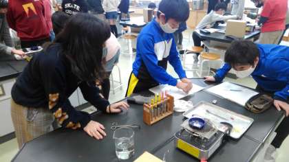 水溶液の中に溶け込んでいる物質を調べています。