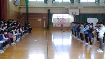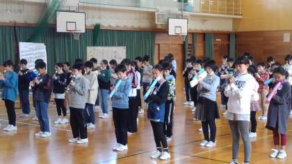 4年生からは、校歌の演奏がプレゼントされました。