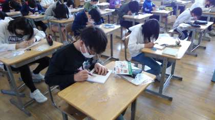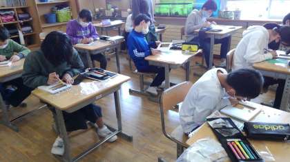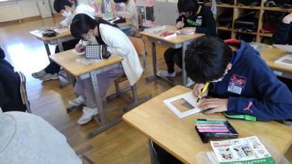 卒業制作で写真立てのフレームに飾りを彫りこんでいます。