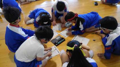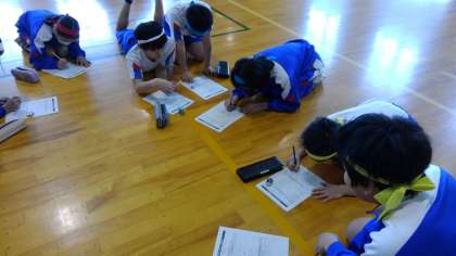 グループで今日のゲームの振り返りをしています。