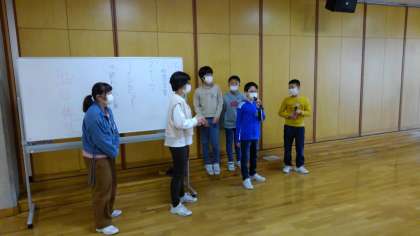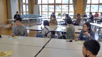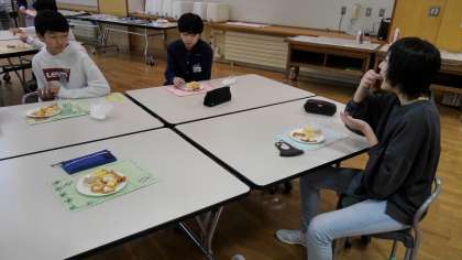 家庭科でデザートを作り、最後の会食クラス集会を行いました。とても楽しそうです。