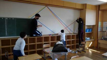 5年生が明日の卒業式のために、一生懸命準備をしています。