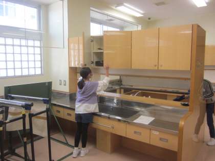 今日は第1回目の家庭科です。家庭科室には何があるのかチェックしました。これからの学習が楽しみです。