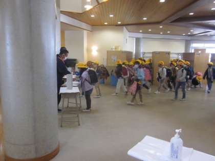今日も子供たちは元気に登校しました。まずは消毒からです。