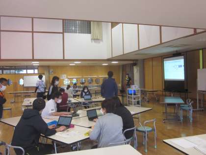 放課後にクロムブック(パソコン)を使って、研修会を行いました。講師は先日、富山市教育センターで研修を受講した本校の先生でした。とても分かりやすく説明されました。